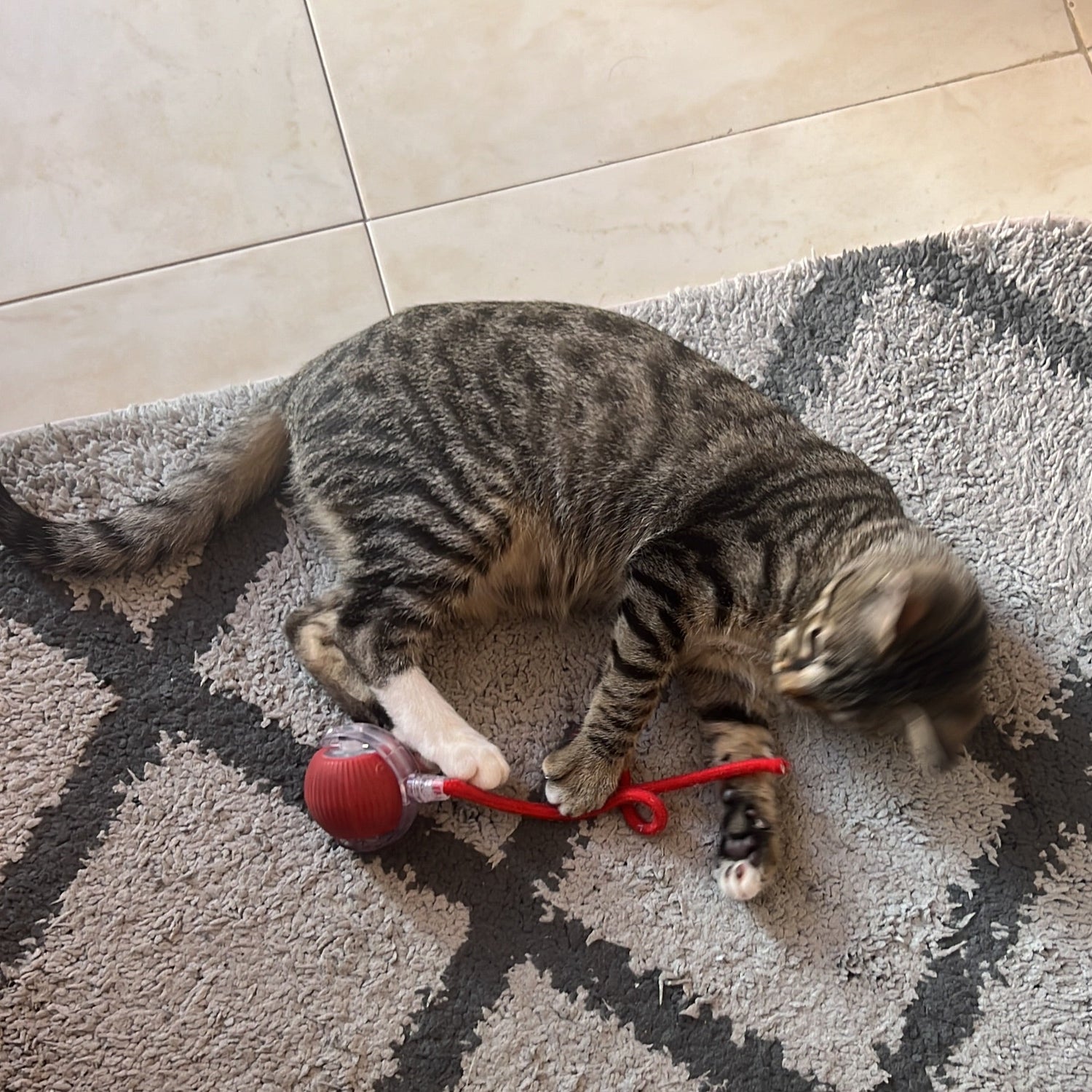 Mientras no se trate de un tigre o un león, no puede pasar. La pelota es de construcción muy robusta y no tiene tornillos visibles. La lengüeta que cierra el puerto USB está totalmente incrustada en la bola, por lo que tu gato no puede arrancarla a mordiscos.